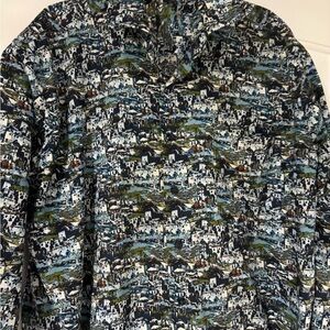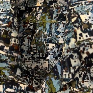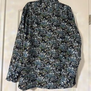 Stylish button down with a unique multicolor pattern. Perfect for casual outings.