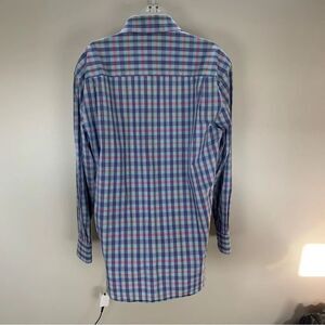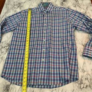 Alan Flusser Plaid Blue Dress Shirt button Down Long Sleeve 100% Cotton Medium