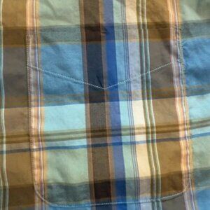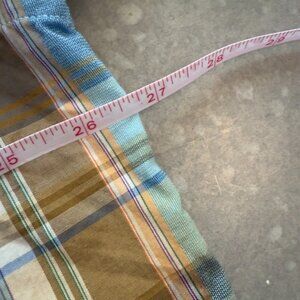 • Color: Multicolor plaid (blue, brown, tan, and mint)