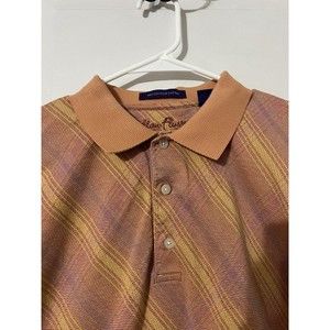 Alan Flusser Polo Mercerized Cotton Orange Plaid Knit Shirt Men L. Size large, color is a bit faded unsure if its supped to be like that