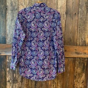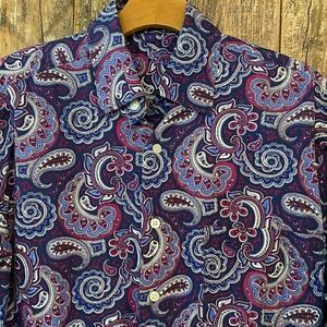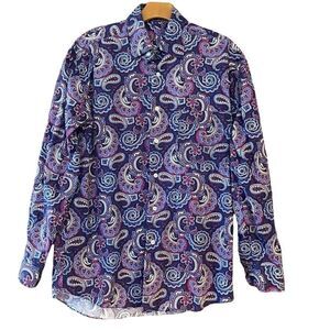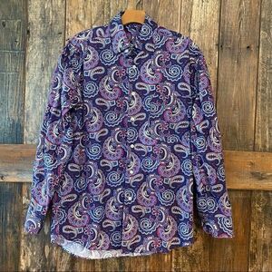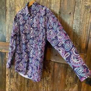 Alan Flusser S Men’s Purple Paisley Long Sleeve Collared Party Event Shirt