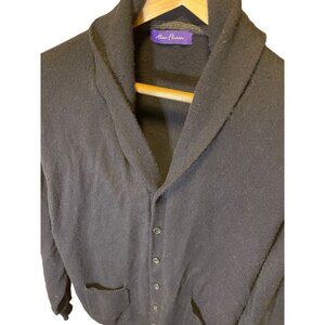 Alan Flusser Shawl Collar Navy Knit Buttoned Long Sleeve Cardigan Sweater