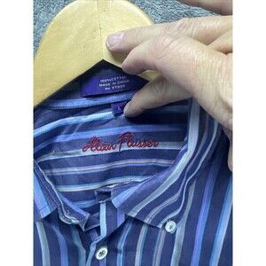 Alan Flusser Shirt Mens Large Gray Purple Button Down Long Sleeve Stripe Casual
