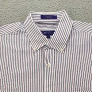 Alan Flusser Shirt Mens Large White Striped Button Down Long Sleeve Classic