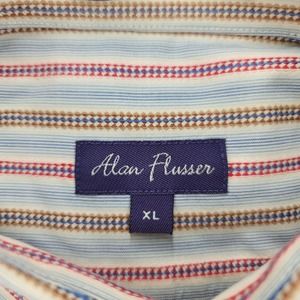 Alan Flusser Shirt Mens XL Blue Red Striped Long Sleeve Classic Button Down