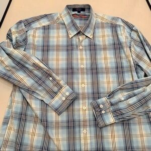 Alan Flusser Shirt Size Large Blue Brown Plaid Button Down Long Sleeve Men