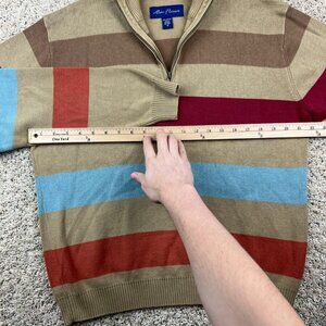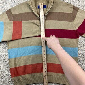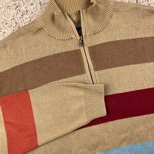 Alan Flusser Sweater Mens Medium All Cotton 1/4 Zip Striped Beige Red Blue