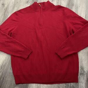 Alan Flusser Sweater Mens Size XL Red 100% Cashmere 1/4 Zip Pullover