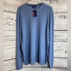 Alan Flusser Sweater Mens Size Medium crew Neck Cashmere knit pullover Blue New