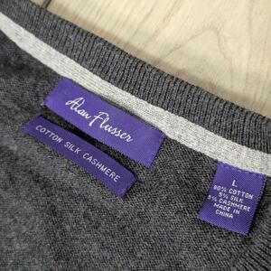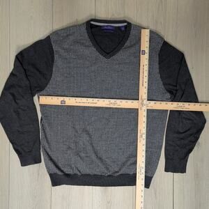 Alan Flusser two tone knit long sleeve v neck sz large gray and dark gray shirt