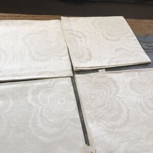 Alan Ladd Hardware Store NWT Ecru Floral Linen Napkins 4 22x22 Palm Springs CA.