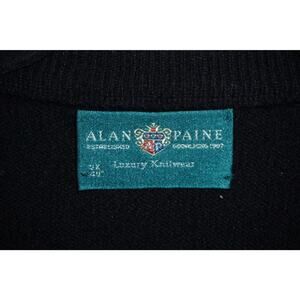 Alan Paine Luxury Knitwear Black Wool Sweater Vest Men’s UK 40R Classic V-Neck