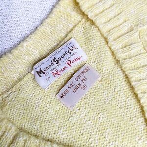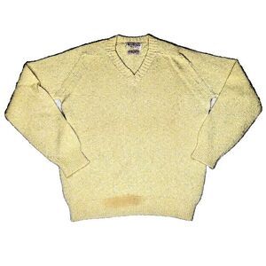 Alan Paine Vintage 60s V Neck Wool Blend Canary Sweater Made In England Size 38