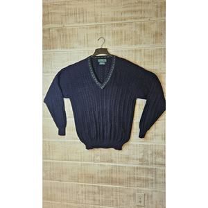 Alan Paine XL Men's Knitwear V-neck Cotton Cable Knit Crickey Jumper Vtg