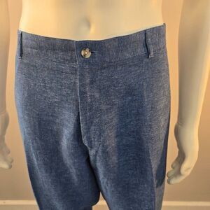 Alan Flusser Pants Heathered Blue Linen Blend Lightweight Size 40 x 30