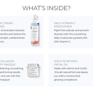 **Gift box includes a Peel Off Face Mask, Cream Facial Cleanser, Vitamin C Face Moisturizer, and Retinol Facial Oil to smooth out wrinkles and eliminate fine lines!