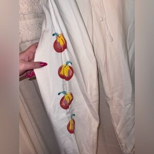 -Peach design on side of pants leg