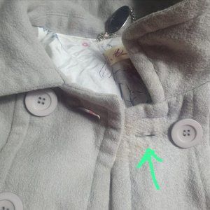 Note: It has a small stain as shown in the last photo. Appears on the inside when the coat is buttoned.