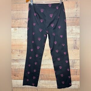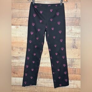 🌻 Alanni by Donny Brook Embroidered Pink Hearts on Black Pants Women’s size 4 🩷💕