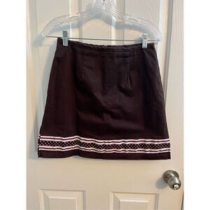 Alanni by Donny Brooke Brown Cotton Mini Skirt Pink Grosgrain Ribbon Hem Women’s Size 6