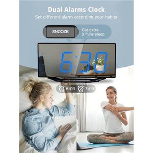 Alarm Clock Bedroom,8.7"Big Display Digital LED Mirror Clock with 2 Alarms