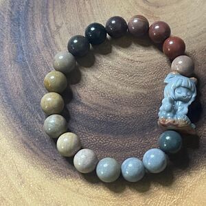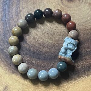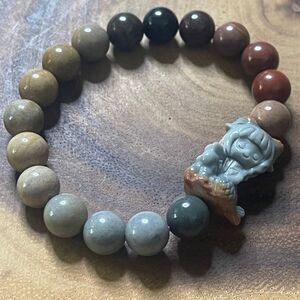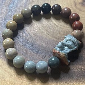 Alashan agate mermaid artisan handmade beaded beads stretch bracelet 6.5” colorf