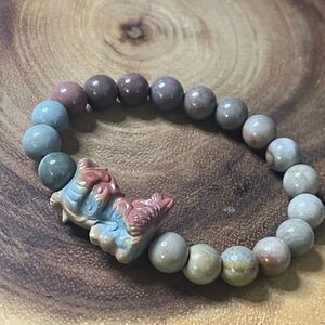 Alashan agate mermaid artisan handmade beaded beads stretch bracelet 6.5” colorf