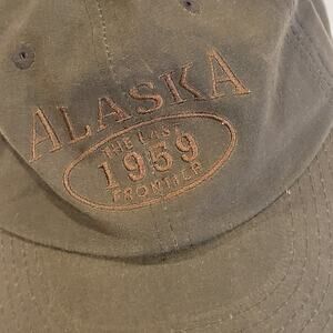 Alaska 1959 The Last Frontier Slideback Baseball Cap Brown One Size Adjustable. By Arctic Circle Enterprices LLC. 100% Cotton.