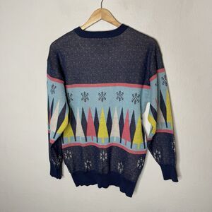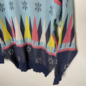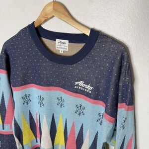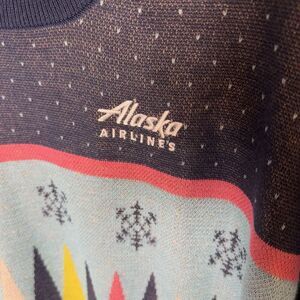 Alaska Airlines Ugly Christmas Sweater Blue Pink Winter Trees Unisex Medium