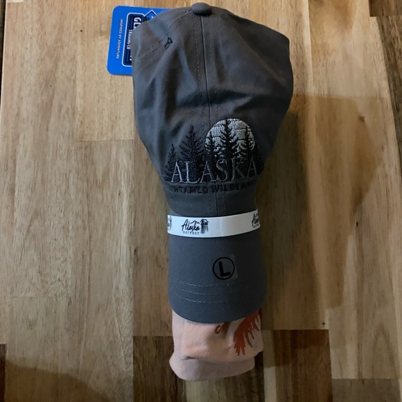 Alaska hat and shirt combo from Alaska! Pink shirt, gray hat.