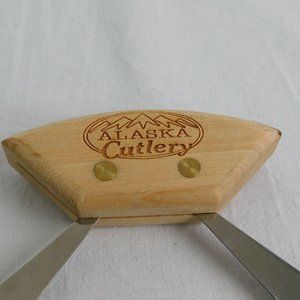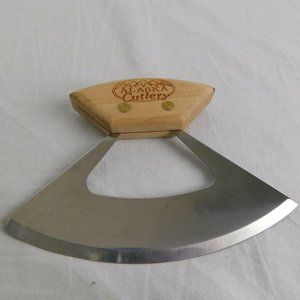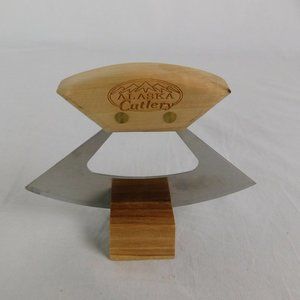 Alaska Cutlery 6" Birch Handled Ulu with 7.25" Birch Walnut Cutting Bowl & Stand