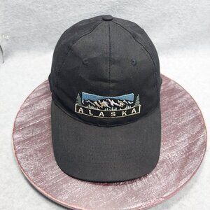 This embroidered Alaska baseball cap offers a classic design with a black backdrop and mountain details. The adjustable snapback ensures a comfortable fit.