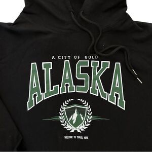 ALASKA Letter Printed Kangaroo Pocket Hoodie in Black in excellent pre-owned condition! Worn once!