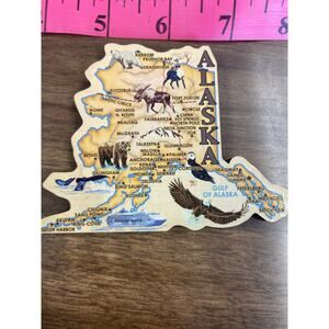 Celebrate the beauty of the Last Frontier with this detailed Alaska state map magnet! Features illustrated wildlife and major cities—perfect for collectors or Alaska lovers. Measures approx. 4.25” x 3.5”.
