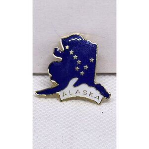 Alaska State Outline Enamel Lapel Pin With Gold-Tone Design & Star Detailing