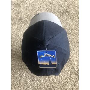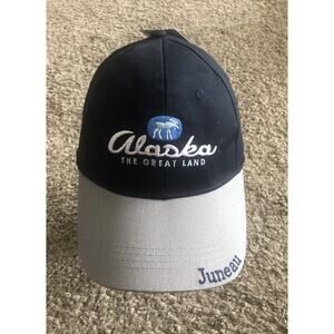 Alaska The Great Land With Moose Hat Cap Adjustable Strap Embroidered Blue Gray