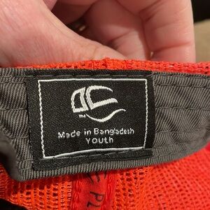 Grey and red youth cap with adjustable back. Platinum Series by Outdoor Cap. Alaska Wild Gear with embroidered fish on side. 2 pulls on side (see photo). Could easily be part of design of cap. Inside of bill of hat “This ain’t the lower forty-eight!”