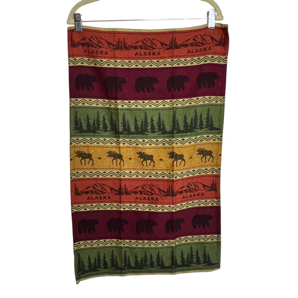 Alaska Wildlife Cotton Dishtowel 28 x 17 Bears Moose Mountains Cabin Lodge Decor