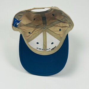 Celebrate the wild beauty of the Last Frontier with this embroidered Alaska souvenir hat. Featuring vivid wildlife designs including a moose, bear, and fish, this beige cap with a navy brim is perfect for outdoor lovers, travelers, and collectors. The adjustable back ensures a comfortable fit, making it great for hiking, sightseeing, or casual everyday wear.