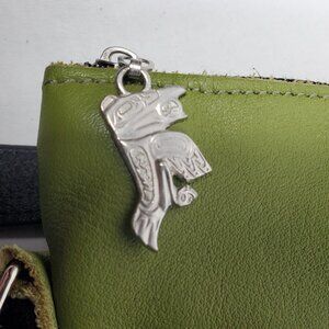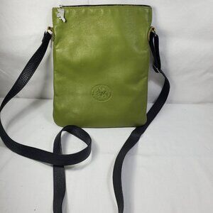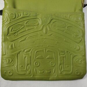 Alaskan Embossed Green Leather Crossbody bag. Embossed green leather with black fabric liner. Never used. Bought in Alaska.