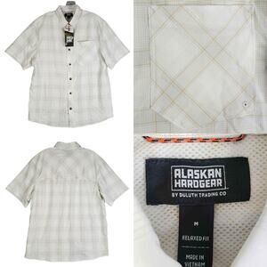 Alaskan Hardgear Duluth Mens 2XL Short Sleeve Beige Plaid Button Up Shirt New