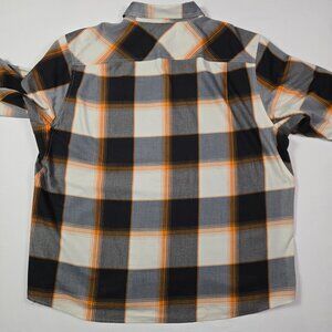 Rugged and ready for adventure! This Alaskan Hardgear by Duluth Trading Co. plaid button-up shirt in size XL features a stylish orange, gray, cream, and black checkered pattern. Crafted from a warm yet breathable 90% polyester and 10% wool blend, this shirt is ideal for outdoor activities, fall layering, or casual weekends. Pre-owned and in excellent condition.