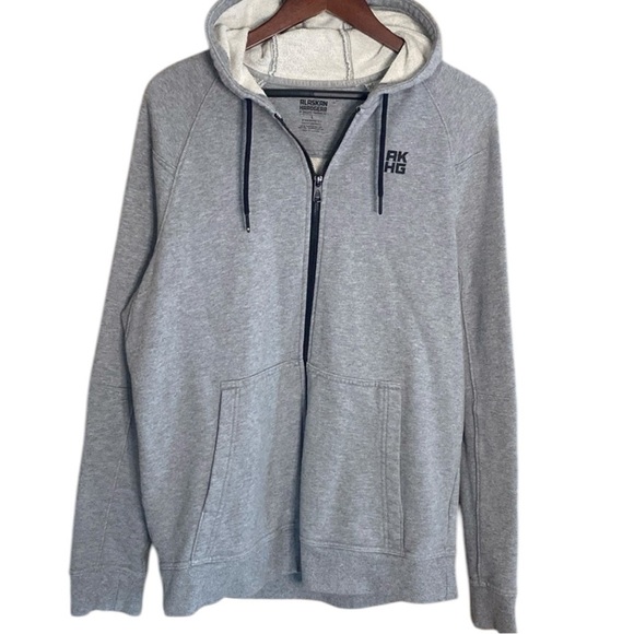 Gently used- 100% cotton- gray hooded full zip- sweatshirt- please see for details- size L