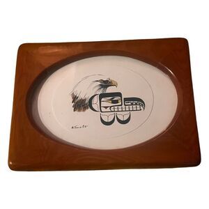 Alaskan Native AK Jones Eagle & Totem Framed Drawing Wall Art Home Decor Signed