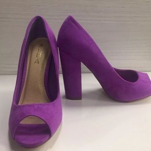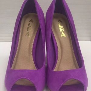 Alba Cintha Faux Suede Peep Toe Chunky Heel Pump