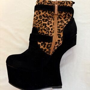 Alba Leopard Print Inverted Wedge Zipper Shoes/Boots - Size 9