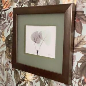 Gorgeous art print of Aspen leaves by Albert Koetsier, matted in a shadow box style with a stunning sea mist green hue mat and framed. Frame says Made in Mexico on back.