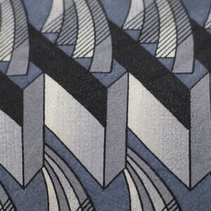 Albert Nipon Abstract Geometric Silver Blue Jacquard Print Short Wide Silk Tie
