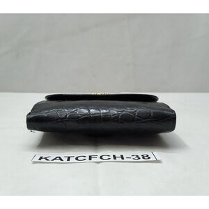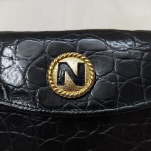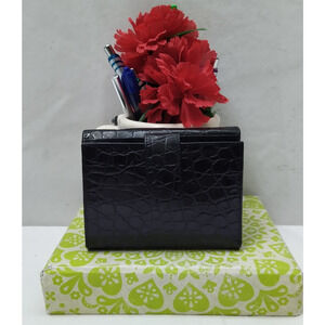 Albert Nipon Black Leather Crocodile Embossed Kislock Credit Card Bifold Wallet