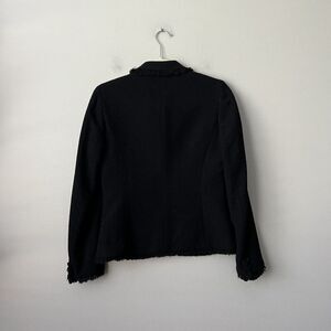 Albert Nipon Blazer Womens Size 4 Wool Blend Black Fringe Details Jacket Lined